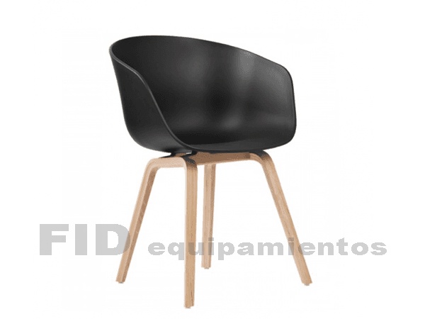 Sillón Lom. Fabricado de plástico polipropileno y la base es de madera.