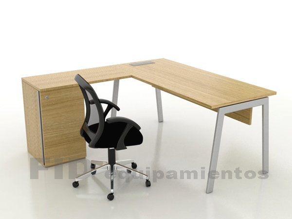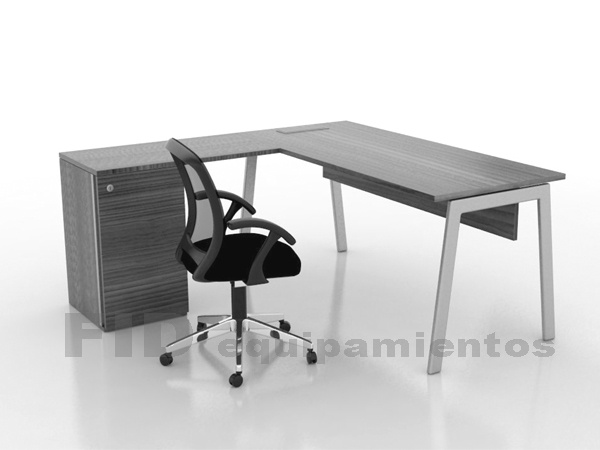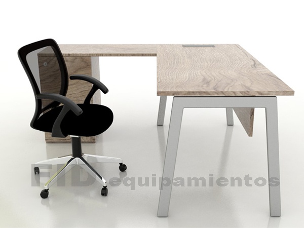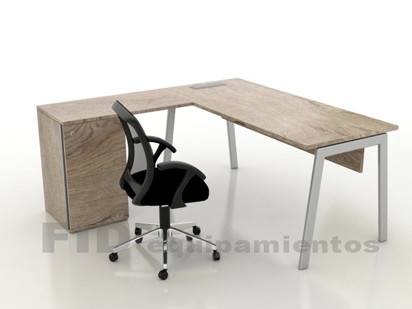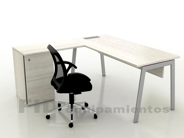 Operativo estructura metálica pintada epoxi color gris aluminio. Tapa en melamina 25mm cantos abs incluye sistema pasa cables y extensión con cajonera pedestal de 4 cajones con llave.