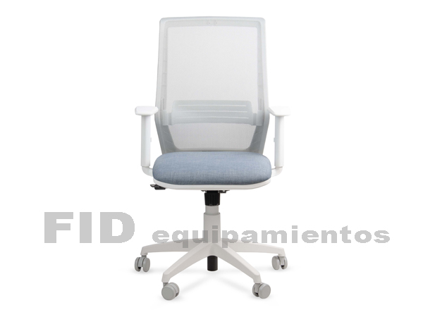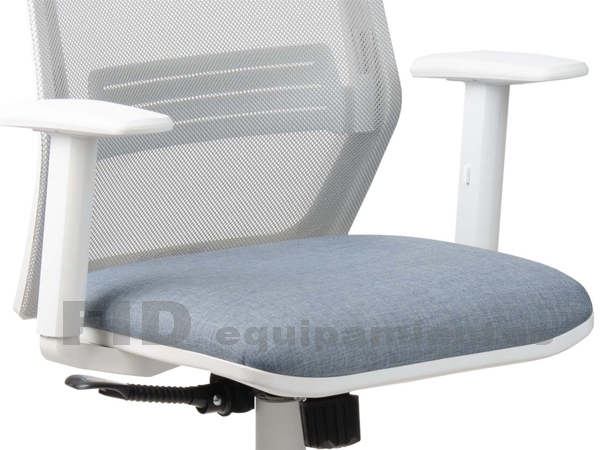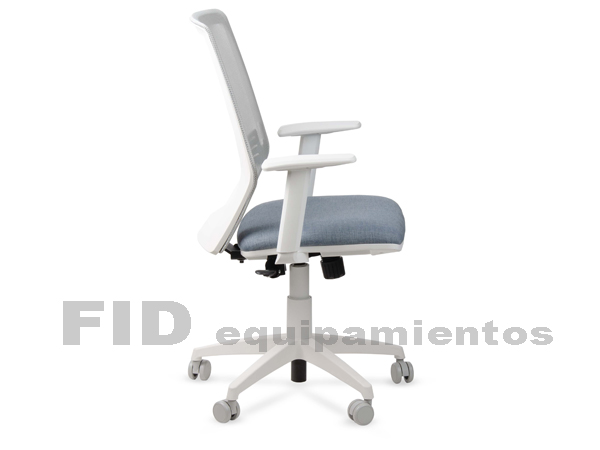 Respaldo de polipropileno, revestido con tela de red mesh gris.