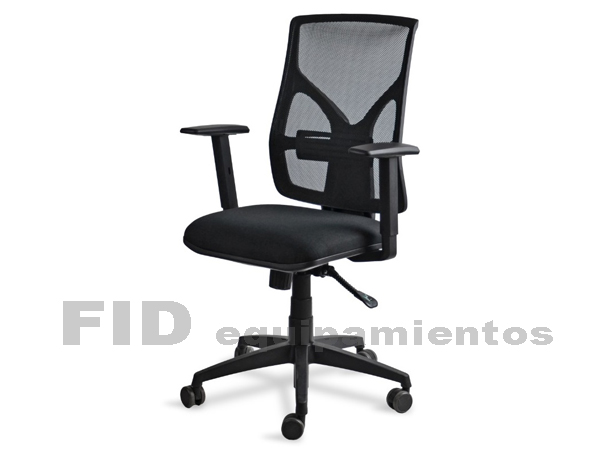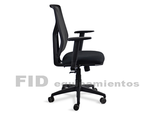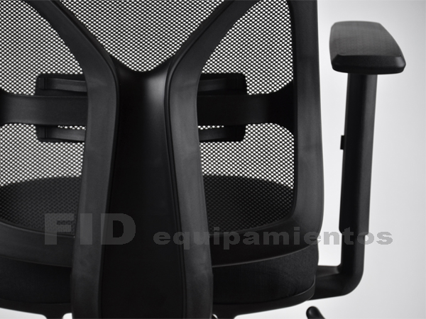 Respaldo de polipropileno, revestido con tela de red mesh negra.