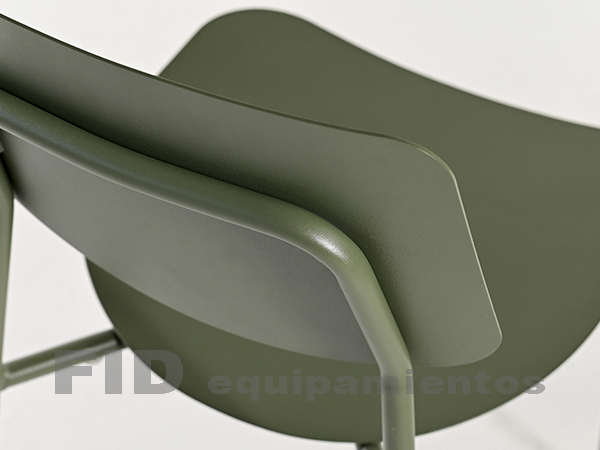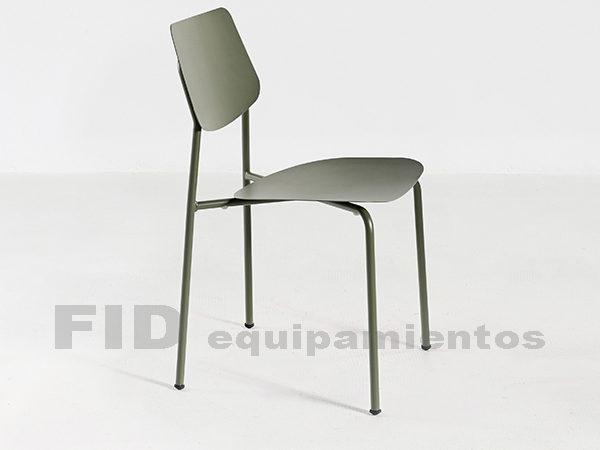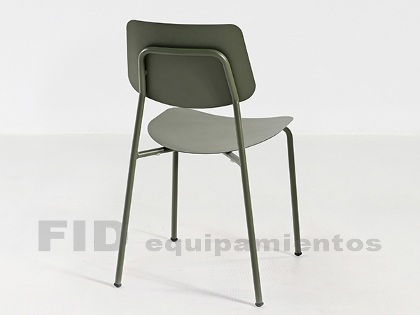 Silla de estructura metálica. Asiento y respaldo de chapa.