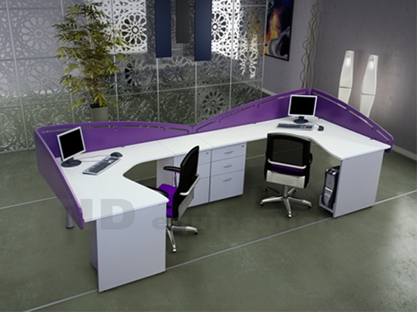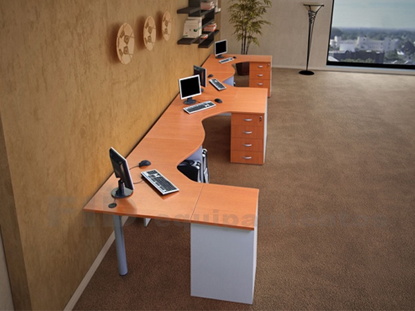Puesto de trabajo para oficina. Línea construida en melamina de 25mm. de espesor. Terminación del canto perimetral en ABS de 3 mm. de espesor. Sin tornillos a la vista. Sistema de fijación BARILOTO. Cajoneras con cerradura de traba colectiva, construidas en superplac de 18mm., cajones en MDF revestidos en PVC color negro y provistos de guías metálicas con rodamientos de nylon de suave recorrido.